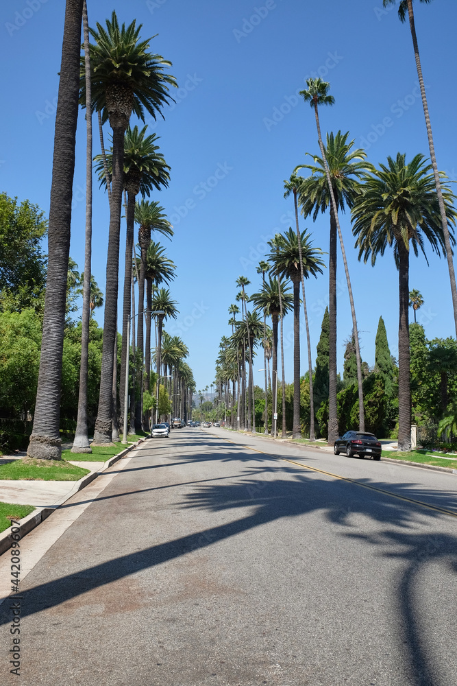 The Famous Palm Tree Street In Beverly Hills Between North Santa Monica Boulevard And Sunset Boulevard Avenues Los Angeles California Stock Photo Adobe Stock